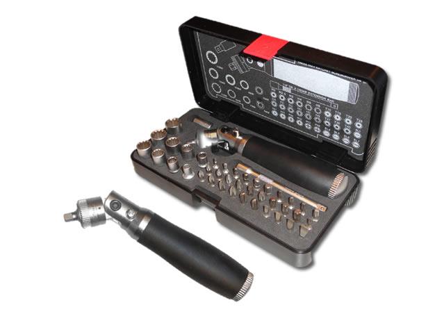 490,00 złW typowej skrzynce narzędziowej nigdy nie ma dokładnie takiego rozmiaru śrubokręta, jakiego potrzebujesz. Ten 42-elementowy zestaw uniwersalny nigdy Cię nie zawiedzie. Zestaw narzędzi z przegubowym kluczem-wkrętakiem z grzechotką, trzy ustawienia pod kątem 45º, 90º y 180º, co ułatwia dokręcanie w miejscach trudno dostępnych. Wykonane ze stali chromowo-wanadowej. W zestawie: 1 klucz-wkrętak z grzechotką, 1 przedłużka 1/4" x 100 mm, 1 nasadka do końcówek 1/4"", 9 wielofunkcyjnych kluczy nasadowych 1/4"": 5- 6- 7- 8- 9- 10- 12- 11- -13 mm, 30 końcówek 1/4"" 25 mm: TORX: T10-T15-T20-T25-T27-T30-T40, PŁASKIE: 3-4-5-6-7, HEX: 2-2.5-3-4-5-6, PHILIPS: PH1 (2 szt.), PH2 (2 szt), PH3 (2 szt.), POZIDRIVE: PZ1 (2 szt.), PZ2 (2 szt.), PZ3 (2 szt.) i walizeczka."